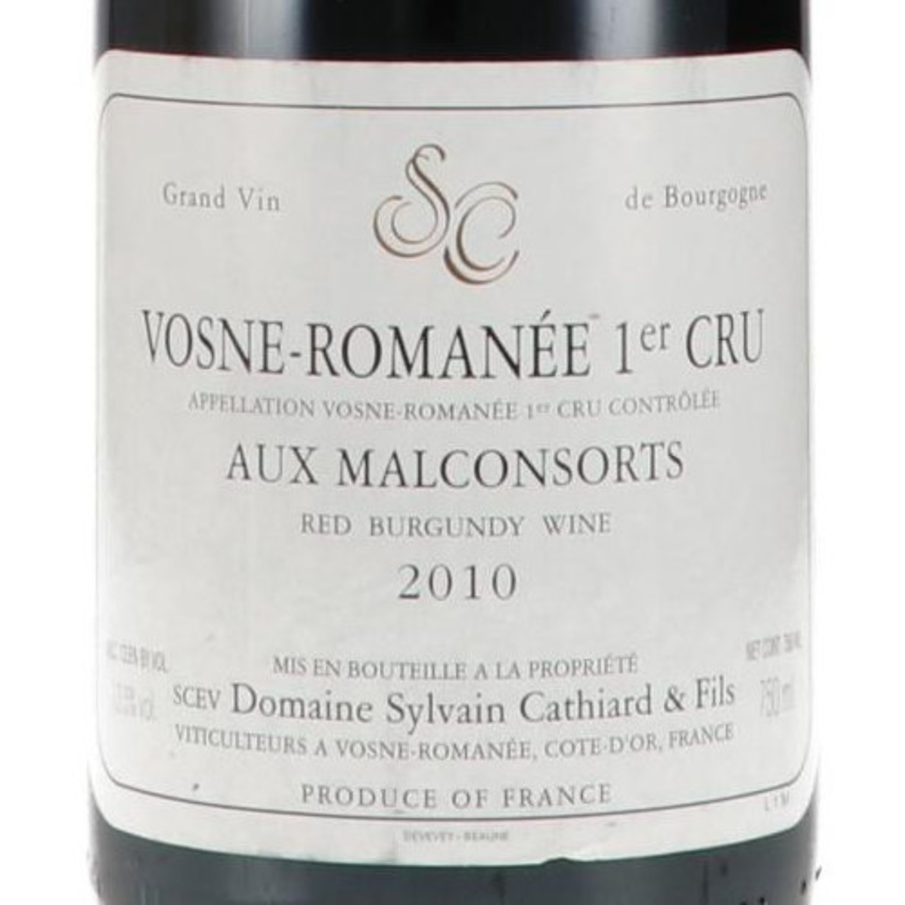 シルヴァン カティアール 2010 ヴォーヌ ロマネ 1er マルコンソール Domaine Sylvain Cathiard et Fils Vosne-Romanee 1er Cru Aux Malconsorts 750ml 正規品 A1216